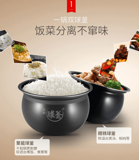 苏泊尔多功能电压力锅SY-60YC05Q一锅双球釜设计,精铁球釜较适合煲汤、焖炖,而聚能球釜具有不粘的特性而且更加耐磨更适合用来煮饭、煮粥。内胆采用球形厚釜技术拥有62°黄金夹角,在烹饪过程中进行弧面立体加热,实现环流大沸腾汤浓饭香。独立手动按钮排气与传统的泄压方式相比更快速,且排气按钮会与限压阀分离,泄气时不烫手更安全。