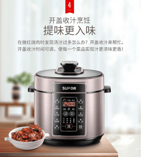 苏泊尔多功能电压力锅SY-60YC05Q大面板设计可容纳更多功能菜单,大按键方案所有功能清楚简洁有效防止误操作,功能菜单一键启动,老年人也能轻松使用。搭配开盖收汁功能让烹饪更入味,在做红烧肉时常常出现汤汁过多的情况,这时正好开盖收汁来帮忙,而且开盖收汁时间可调让菜品实现汁更浓味更香。还有智能安全锐眼与人性化的可开盖提示使用更安全省心。24小时预约设计让生活更方便,起床就想喝到营养甜粥只需预约8小时,次日7点准时出锅;下班不想做饭,只需在上班前将大米放好预约10小时,下班到家就可以享受热腾腾的米饭,省出更多自由时间生活更轻松。