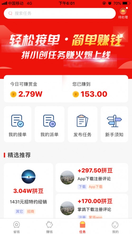 平台内还有各种线上任务,包括不限于APP注册、关注公众号、APP下载、点赞、涨粉、拼一拼、砍一刀等。分享或者自己做任务可以赚取高额的佣金。平台还有每日看视频、文章、小说等等都可以赚钱,这些都是零成本的赚钱项目,你只要每天发发朋友圈分享给好友或者自己去参与就有“收入”。当然平台也聚合共享设备布点、刷脸支付、彩票销售布点、商家pos服务、项目招商、线下商家引流等多个领域优质创业项目。
