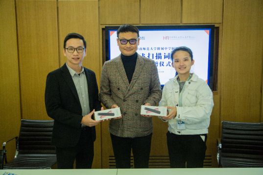 这次,科大讯飞公司向华师附中国际部捐赠讯飞扫描词典笔帮助智慧教学,让师生们可以体验前沿的科技服务,依托科技的力量和优势,让学生们提高外语学习效率,提升个人在国际化平台的竞争力。