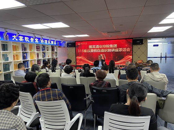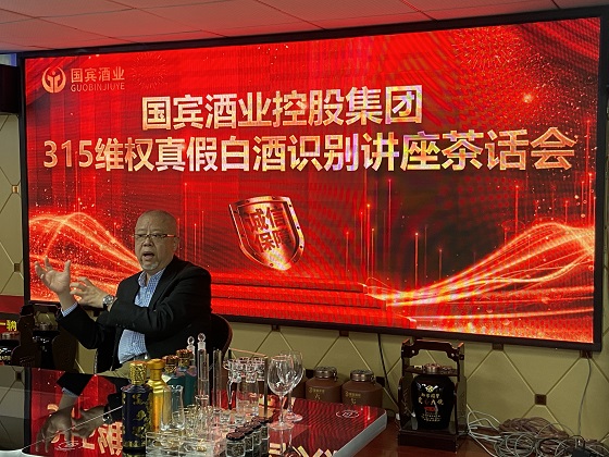 3月15日下午,国宾酒业控股集团组织客户及股东近百人举行《315维权白酒真假识别讲座茶话会》,国宾集团董事副总裁、,评酒师谭震中现场演示了酱香型白酒的真假、优劣产品的识别方法,并以触目惊心的案例,阐述了劣质白酒对人体的危害。