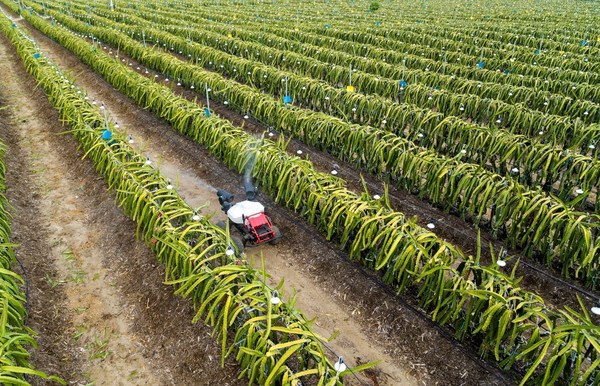 极飞R150农业无人车为火龙果园提供精准喷洒服务