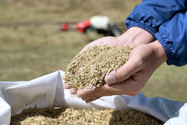 在四川若尔盖草原播撒草籽