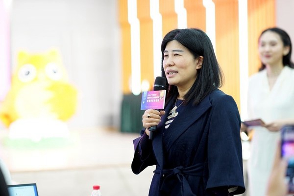 北京外国语大学外研集团党委书记、董事长,外研社社长王芳分享“外研社杯”十七年成长之路 丘玲玲摄
