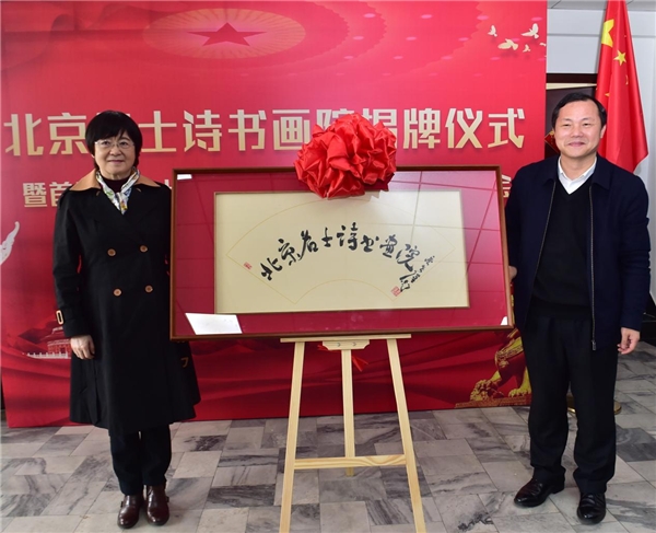 (名誉理事长周琪与艺术顾问吴戈共同为北京名士诗书画院揭牌)