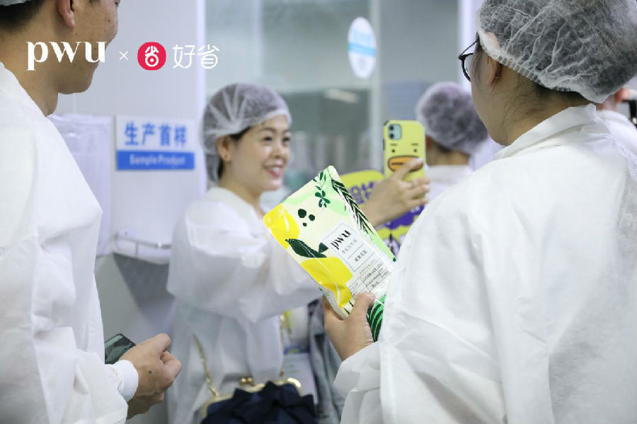 此次溯源之旅,探访pwu香氛洗衣液产品,好省的导购KOC们来到位于广州的生产基地,pwu的产品经理首先对成分、配方、原理等做了详细的讲解,在对产品有了基础性认知后,一行人换上防护服,实地参观了洗衣液生产线和香味实验室,从原料到生产工艺,从参观产品到亲身实验,在场的导购KOC们一边观察着生产细节,一边为自己社群的用户“现场直播”,消费者可以跟着导购KOC的步伐云体验,极大地增强了品牌在消费者心中的信任度,让品牌更加深入人心。