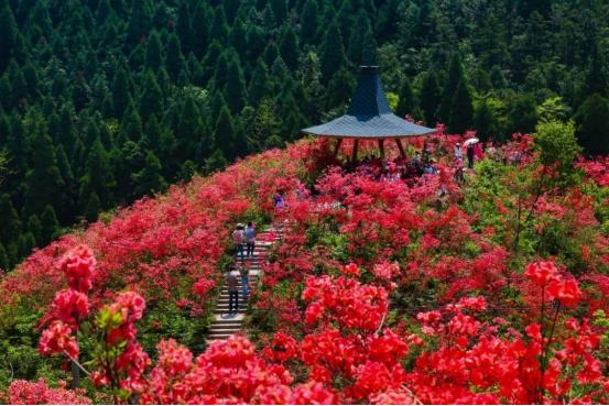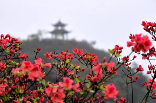 其实,龙泉山的杜鹃花,属于野生灌木植物,花杆高低适中,让人对披着露水的杜鹃花瓣触手可及。站起身来向远处眺望,无时不感受到杜鹃花海扑面而来的汹涌之美,当站在山顶向下俯瞰,满山的杜鹃花如同它的别名映山红一样,炽热而奔放,映红了整座山,也映红了游客们快乐的面庞。