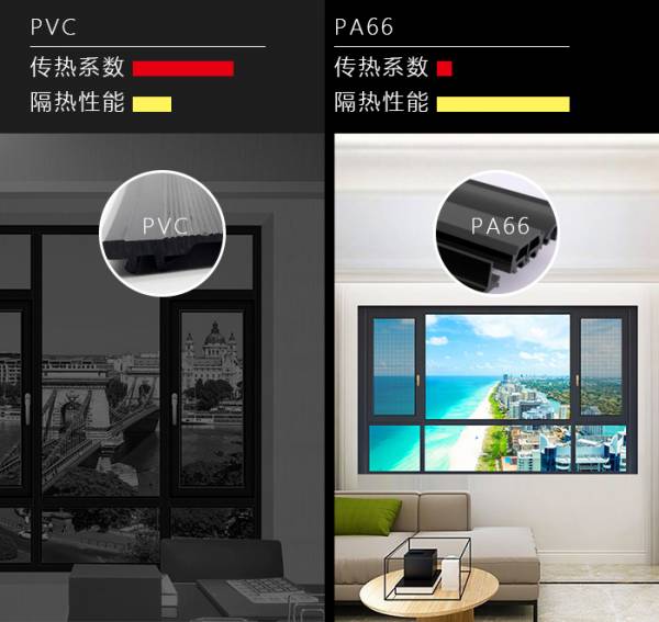 50%以上的建筑能量损耗是通过门窗损失的,带有隔热条的断桥铝能减少室内的热量流失,市面上的隔热条分为PVC普通隔热条和PA66尼龙隔热条,两者之间从成本价格就相差几倍。门窗十大品牌欧铂曼门窗采用PA66隔热条,其耐高温、热传导低,相比普通隔热条其更能实现隔热保温节能效果。