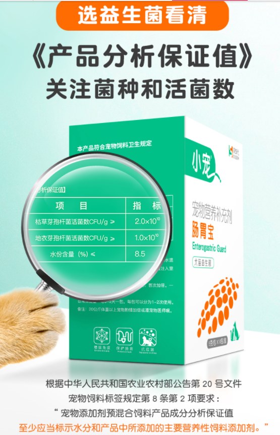 ,大家选择宠物益生菌一定还要注意看清产品分析保证值,为爱宠选择真正适合它的宠物益生菌。