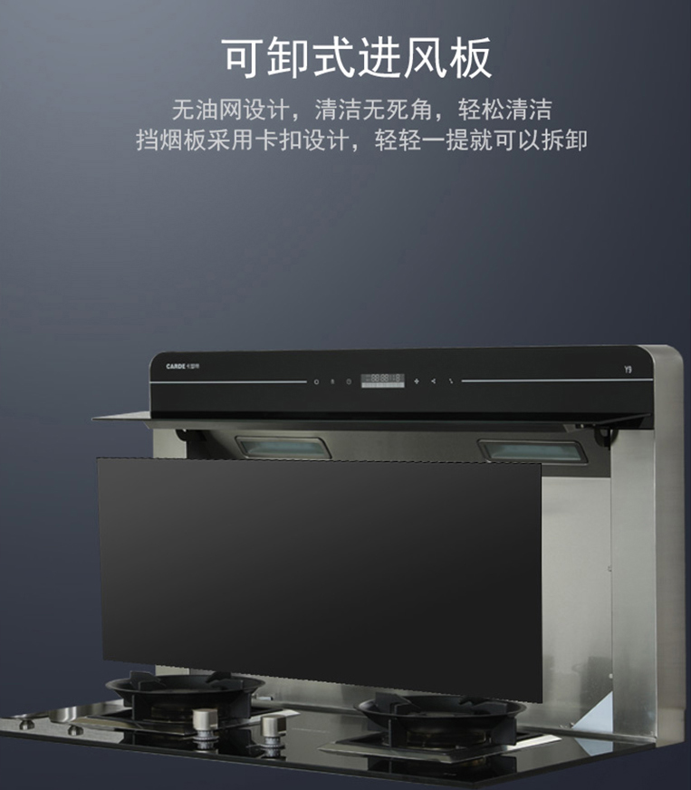 卡梦帝分体式集成灶钢化玻璃台面,特氟龙不沾油挡烟板,无论如何使用,清洁都毫不费力,只需轻轻一擦,即刻恢复光亮如新,加上可拆卸加持,日常清洗更轻而易举。从此,让煮妇/煮夫们解放日复一日的厨房辛劳,回归轻松却不失品质的美好生活。