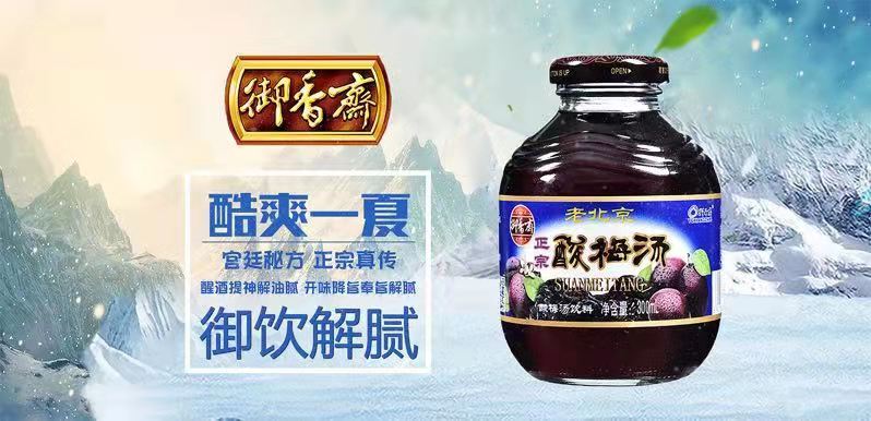 酸梅汤作为开胃、醒酒、排毒养颜的功能饮料,在餐饮渠道有着其他饮料无法比拟的产品优势,同时,酸梅汤的醒酒功效能得到男食客的欢迎,而排毒养颜功效则能得到女食客的青睐。作为北京的传统老字号,御香斋只做最能满足你味蕾的酸梅汤,不为名利,只为口碑,中国传统饮食文化中,主人请客人吃饭,都希望客人胃口大开,吃好喝好,客人吃得高兴,主人才高兴,饭前一杯酸梅汤,开胃养颜不可少。欧美国家有开胃酒,中国有开胃饮料——酸梅汤,而想喝酸梅汤,就选御香斋。夏天就快到了,你的解暑神器准备好了嘛?