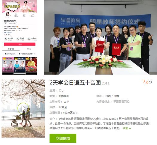 抖音上很火的日语老师艾莉其实是早道的哦~她的《2天学会日语五十音图》课程,曾创造累计点击量将近500万,成为相当多人的日语启蒙。