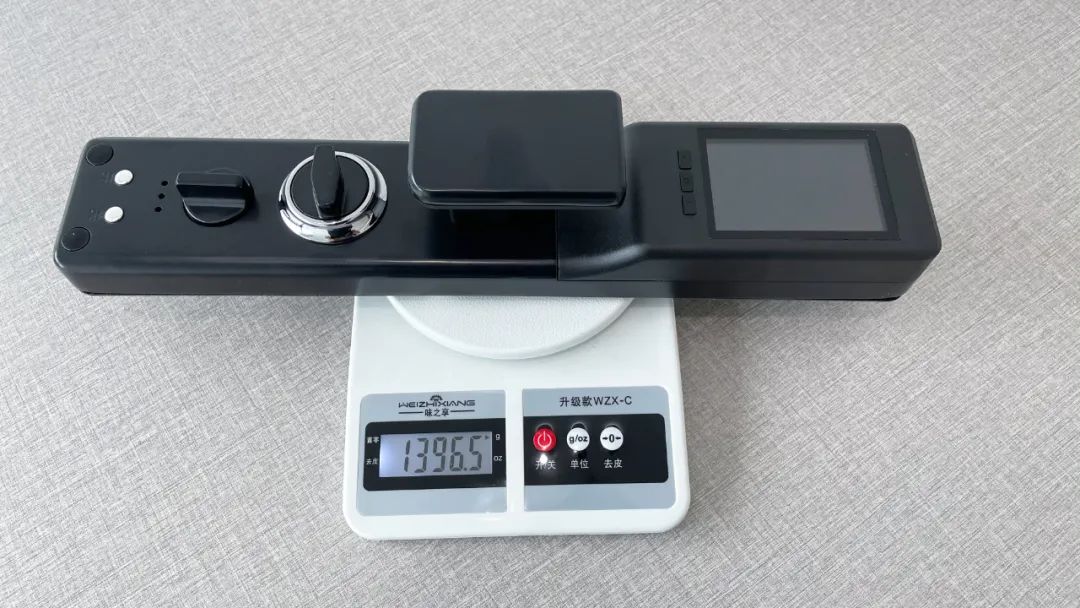 E3-M前面板与61.英寸手机一般大小,重量为312克,整体非常精致小巧,安装到门上之后,能提升家门的整体观感。后面板重约1396.5g,加上前面板一共约1708.6g,约等于3.4斤。