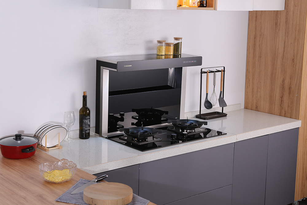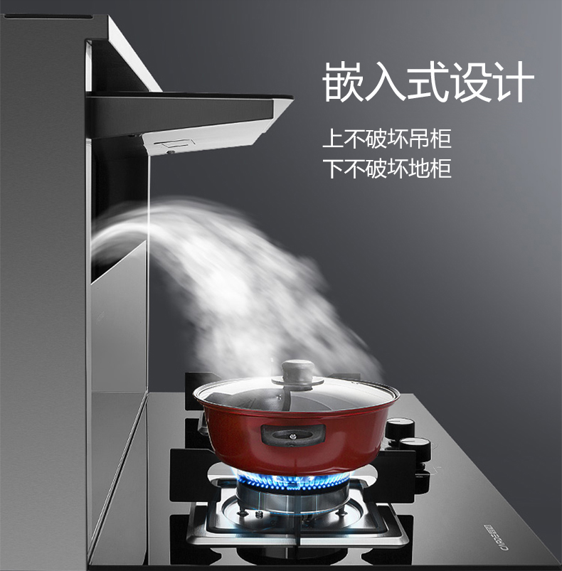 选择做开放式厨房的风格,这样就可以去除厨房和客厅之间的那一堵墙,更加有一种通透的感觉,并能拓宽视线。然而中式烹饪方法多以炒、煎、炸、煮、烹等重油重盐为主,这些烹饪方式多半会伴随着极大的油烟,可是传统三件套吸油烟效果不佳,容易造成油烟扩散,弄脏家具。长此以往,没有吸净的油烟不仅会在整个家中留下难以清洗的污渍,还会危害人的身体健康。