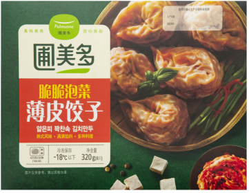 中国各地霜降进补的美食不尽相同,但大多喜欢食热食肉进补,这时候“长劲儿不长肉”的饺子便成为许多人的进补,。想象一下,屋外冷风阵阵,一碗热气腾腾的饺子下肚,解馋又御寒,顿时觉得屋里温暖如春。如果这饺子还“皮薄、个大、味鲜美”,更不由得想多吃几碗。——圃美多的“脆脆泡菜薄皮饺子”和“鲜香杏鲍菇薄皮饺子”,正符合这些特点。