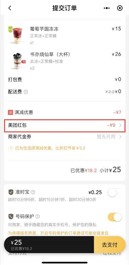 3、选择要购买的美团外卖,并使用符合条件的美团外卖优惠券红包享受优惠;