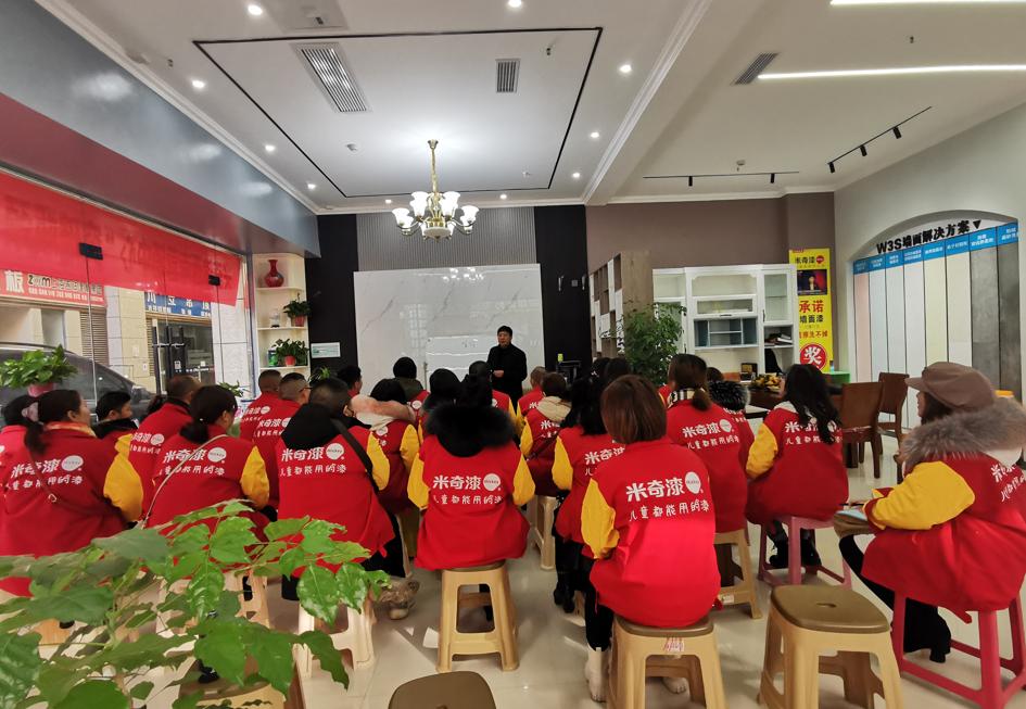此外,米奇漆总部西南大区陈兴其陈总尤为强调了服务的重要性。消费者对企业品牌的认知和消费,大多是开始于终端,所以经销商要服务好消费者,展现良好的品牌形象。为此,培训会上,米奇漆也加强了服务培训,包括培训好工作人员的服务态度、规范服务行为、传达完善的服务理念,让终端人员有据可依,切实做好服务。