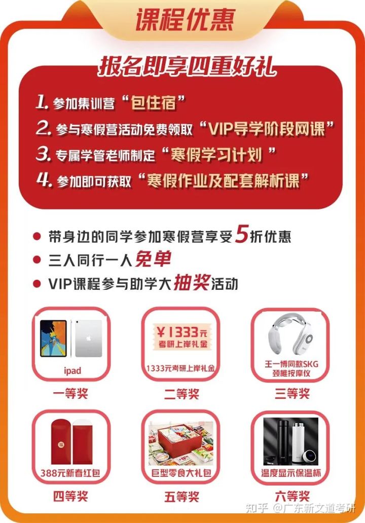 带着你想奋斗的小伙伴一起考研,可以享受三人同行,一人免单的超值福利!!而且可以享受寒假营的“5折优惠”~~,VIP课程还可以参与助学大抽奖活动!iPad、1333的考研上岸礼金、王一博同款按摩仪器,礼品等你抽到手软~~