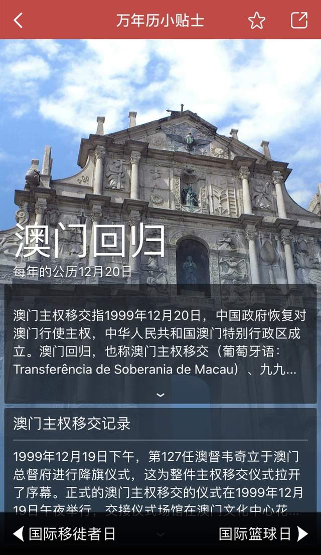 今天,万年历App就和大家一起“忆当年”,看看澳门回归前后的那些“故事”。