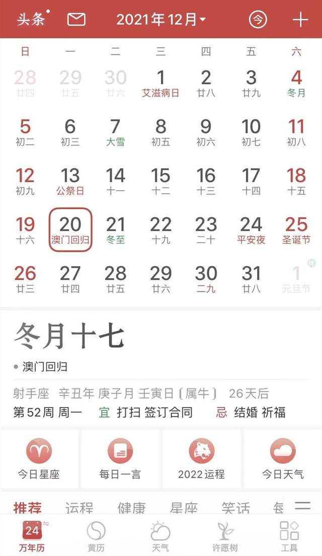 万年历丨纪念澳门回归
