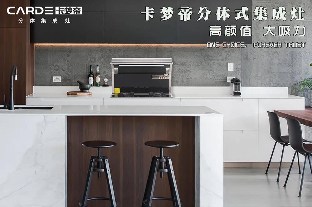 厨房,正在被新一代年轻人重新定义,除了追求时尚和潮流外,空间布局与使用功能的结合也备受大家青睐。具备潮流艺术风格的卡梦帝分体集成灶,简洁大方,美观实用,将高颜值与烹饪环境融为一体,既丰富了视觉层次,又增加了现代感。