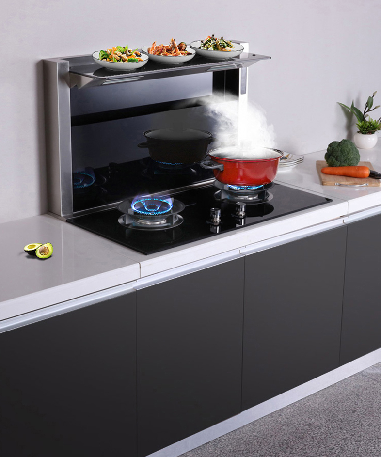 卡梦帝分体集成灶凭借着模块化集成一体的精巧结构,化繁为简,造型,简约,赋予厨房空间,的艺术气息,内嵌设计使厨房里的每一寸空间都不浪费,而且在视觉上清爽有序,进一步丰富空间层次感!