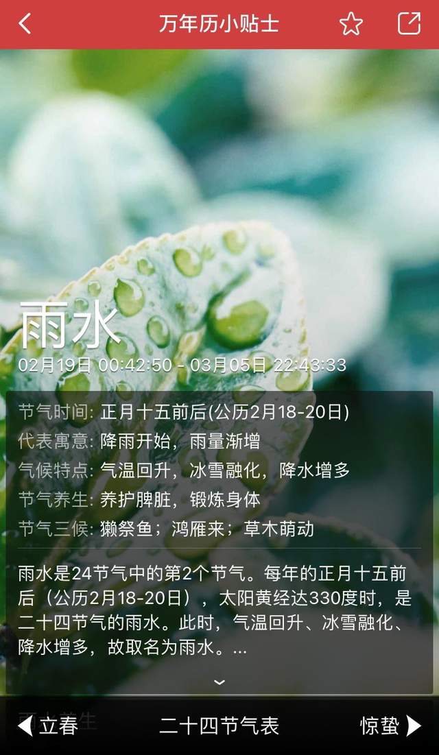 雨水节气不仅代表了此阶段的物候特征,也蕴含了古代人的诸多养生智慧。更多2022年节日节气提醒、养生宜忌,尽在万年历App,赶紧打开手机搜索并下载51万年历获取吧!关注万年历App官方微信,体验传统二十四节气之美!
