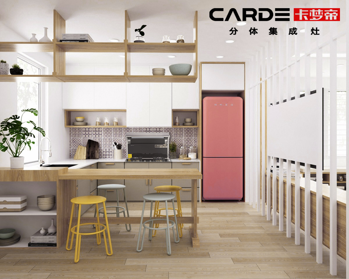 功能集结。说来,卡梦帝分体集成灶的设计原理并不复杂,它集烟机、灶具功能于一体,进一步提升实用性与厨房空间的可利用率。