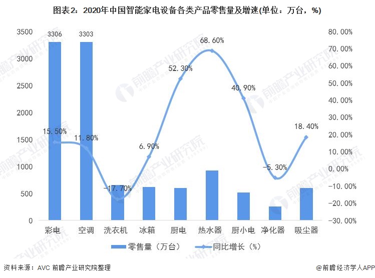 在规模和品类不断增长的智能家电产品中,始终保持需求旺盛的彩电及空调智能化产品,是市场增长的主要驱动力。在AVC统计的2020年智能家电产品零售统计数据中,智能电视与空调的出货量远超同期的额其他智能家电产品。这也不难理解,为何云米科技等行业领先的智能家电品牌,纷纷加注彩电及空调市场。