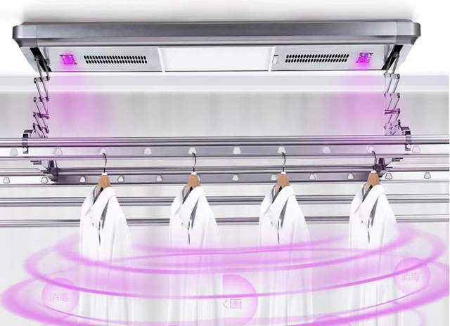 兼顾功能性、舒适性、美观性,晒帝将智能元素带进阳台,晒帝Q11智能晾衣机采用高转速大吸力静音风机,搭配多通道立体风干烘干技术,能达到360度风向环绕,瞬时干衣更静音;衣物烘干后再进行三十分钟的紫外线物理消毒,能有效去除螨虫、细菌、病毒等附着在衣物上的微生物,为全家人带来时刻贴心的晾晒守护。