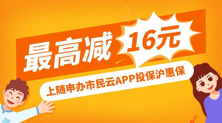 即日起至2022年7月31日,上海市基本医保的在保人员(职工医保、居民医保),在“随申办市民云”APP上提交“沪惠保”订单,并使用“云闪付”方式付费,即可享受保费,立减16元!