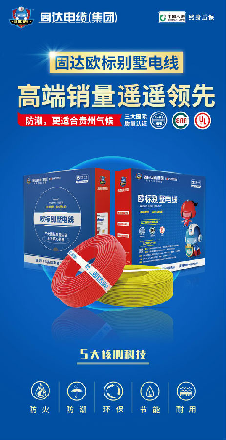 摘要:固达欧标别墅电线升级5大核心工艺;在电线耐高温、防潮、抗老化和节能省电等方面不断探索研究,为万千家庭安全生活用电带来了双重保障。