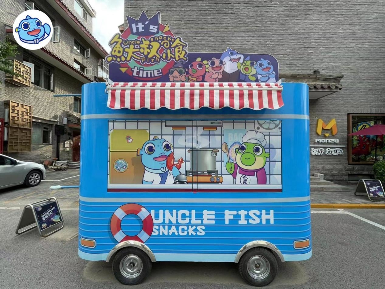 除线上渠道的运营,鱼大叔还在开拓线下消费场景。依托供应链优势,鱼大叔在线下打造海味餐饮社区店和小吃车这样的小型业态,打造鱼大叔小食海味研究所,在其中放入品牌的周边产品,强化消费粘性和品牌体验。流动的海洋文化餐车,满足社区、学校、景区等多个场景的需求。