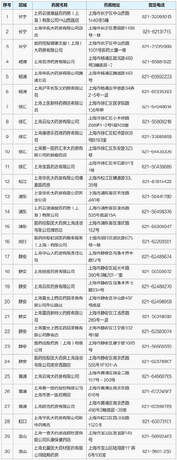 选择在“沪惠保”30家特约药店购药,可享受国内特药直付和送药上门服务。30家特约药店清单如下: