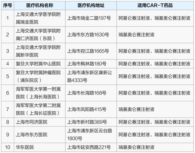 CAR-T治疗的指定医院有哪些?