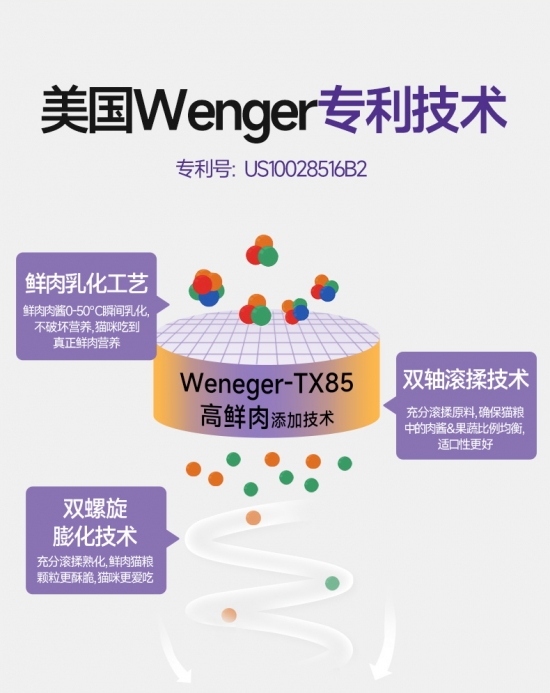 麦富迪鲜肉天然粮第一成分是鲜肉,含鲜肉量有50%之高。添加高比例的鲜肉这可不是什么粮都能做到的,麦富迪率先引进美国WengerTX-85的设备,可以直接将鲜肉制作成细腻的肉酱,既不破坏营养,又能保证粮的口感。