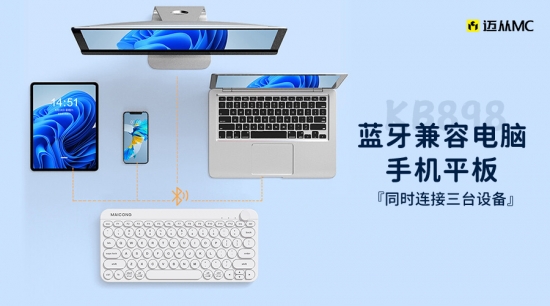 能同时连接三台设备,不仅能连接笔记本和平板电脑,还能连接手机,成为得力的打字小工具,使用快捷键可以在三台设备中自由切换,换一台设备继续灵感创作,脑洞不应该被外设局限住,键盘装备更应该是锦上添花的存在!不管在工作或者是学习的各种生活场景中,迈从希望能带来更多的惊喜和愉悦。