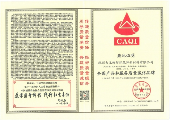 此次奖项由权威机构中国质量检验协会颁发,考核长达3年见证了大王椰集团近年来的品质飞速发展。三年磨一剑,积淀出前沿的品质标准。在中国质量检验协会自2019年-2022年长达三年的调查汇总中,大王椰喜获“全国质量检验诚信企业”,“全国产品和服务质量诚信品牌”和“全国质量信誉保障产品”三项殊荣。