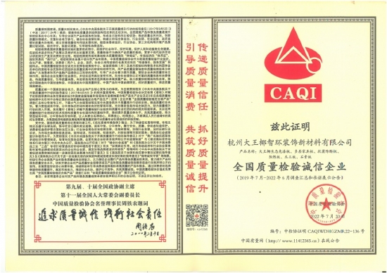 共筑质量诚信,见证国羽品质。近日,大王椰荣获中国质量检验协会三项大奖。凝练所成见证大王椰不断地成长,以及始终如一的品质表现。