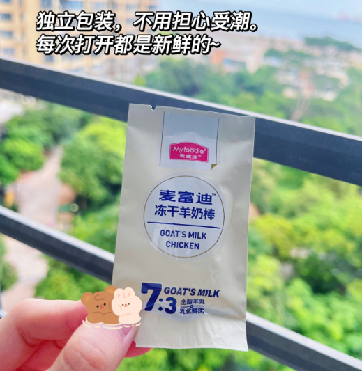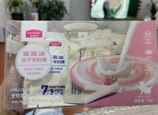 麦富迪的这款冻干羊奶棒号称是小奶猫的第一口零食,是可以嚼着吃的羊奶营养!我马上就给桃子崽崽安排了。