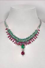 这件作品延续卡地亚混合多种造型的设计手法,完全基于宝石本身构建结构,利用宝石的不同形状,将一组28颗产自莫桑比克的风筝形红宝石与大量六边形、梨形、方形及明亮式切割钻石组合搭配。艳粉色和钻石的纯粹光芒营造鲜明对比,精心排列之余展现平衡的美感。