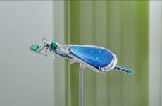 一个多世纪以来,蜻蜓一直是卡地亚的创作主题。如今,这款胸针带来崭新风貌:蜻蜓的翅膀以一颗20.09克拉欧泊打造,虹彩色调宛如阳光下闪烁的翅膀光晕。欧泊周围饰以富有纹理的白水晶,正如蜻蜓翅膀映射的光线。