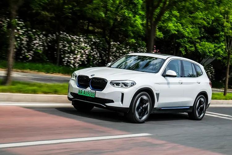 再看看宝马iX3,车身采用了宝马,的设计风格,半封闭式双肾格栅、分体式矩阵大灯、利用蓝色饰条修饰的三体式前包围确实让人眼前一亮,但是比起凯迪拉克LYRIQ锐歌更彻底的潮流化的车身设计就显得稍稍有些平淡了,没有纯电车的特点。其采用悬浮式车顶+双腰线车身设计,是经典家族式的设计风格,虽然不难看,但是到底缺乏了一些新意。尾部方面,宝马iX3也是中规中矩的表现,稍显普通,熏黑尾灯、色彩度丰富的扩散器,虽有活力但没特色,着实谈不上出众。