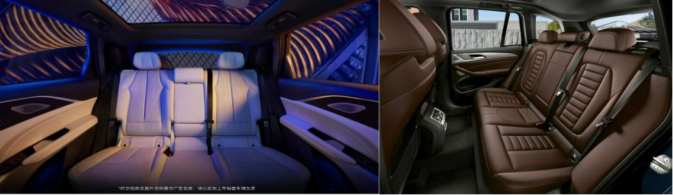 再从尺寸上看,凯迪拉克LYRIQ的车长是5003mm、车宽是1977mm、车高是1637mm,轴距为3094mm,后备厢常规容量为521L,后排座椅放倒后,可实现1549L的储备量,在驾乘与储物空间上展现出了充分的空间特点。宝马iX3长宽高则为4746/1891/1683mm,轴距为2864mm,LYRIQ轴距就比宝马iX3长了230mm,从参数方面就不占优势,车内空间方面也不用多说了。此外,与凯迪拉克LYRIQ锐歌车内搭载的标配加热/通风/按摩座椅相比,宝马iX3车内搭载的座椅只支持加热功能,略显诚意不足。因此,舒适出行方面,宝马iX3是处于下风的。