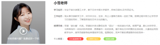 然后就是我的下一位33,多才多艺的小雪老师!这位更是个大美人,长的甜甜的,但是就是会比较严格,如果被老师发现你忘记了前面的知识,可是会被罚写的哦~不过虽然是这样,课堂上举手的同学们还是很多的,被鞭策才会有动力,就是罚写确实挺多的(是我的问题呜呜呜)私底下小雪老师是一个很喜欢和同学打成一片的老师,私聊也是可爱感满满,用东北话说就是招人稀罕!