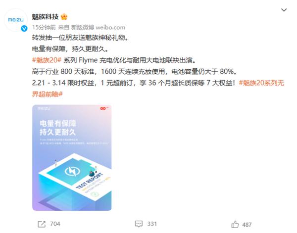 今天,魅族官方正式宣布,魅族20系列将通过充电优化与耐用大电池的组合,为用户带来持久耐用的电池寿命。据介绍,魅族20系列能实现在长达1600天的连续充放使用后,电池容量仍大于80%,远远超过了行业规定的800天标准。同时,1600天(约53个月)的时间也已经超过了魅族20超前预定的36个月质保。
