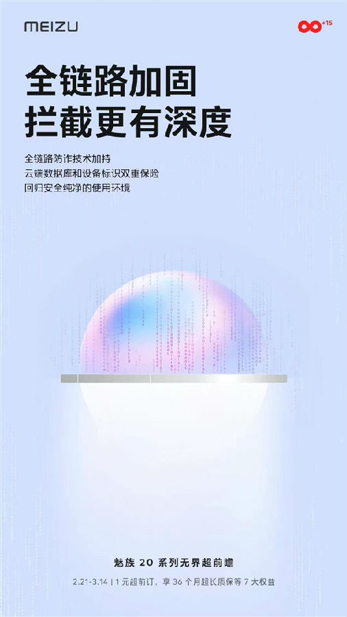 据悉,魅族宣布魅族20系列,Flyme 10无界生态系统,支持全链路防诈技术。官方文案写到:“全链路防诈技术加持,云端数据库和设备标识双重保险,回归安全纯净的使用环境。”
