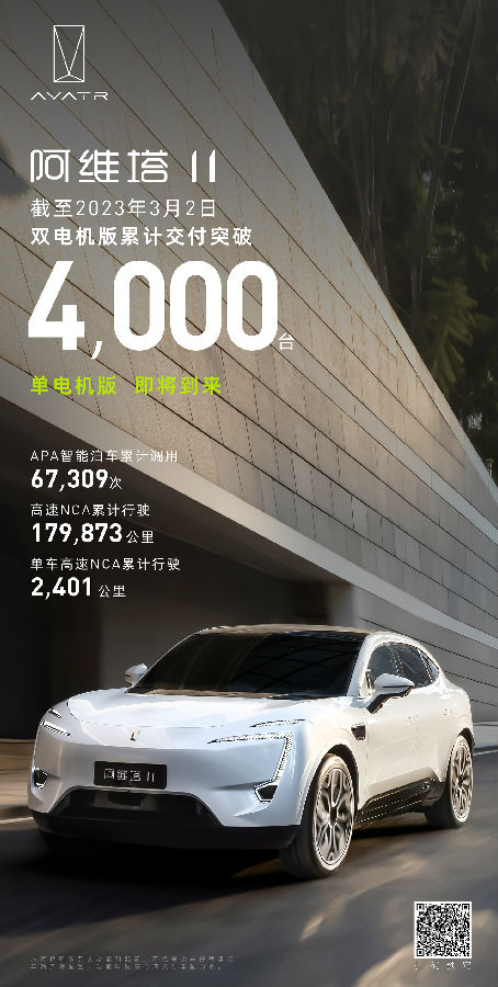 我们知道,现在新能源汽车市场品牌众多,竞争的激烈程度不言而喻,那么,为什么阿维塔能在竞争激烈的市场中拔得头筹呢?原因是阿维塔11的强大产品力赋能。因此,2月份刚刚结束,阿维塔官方就传来了好消息:截至3月2日已经累计交付量突破4000辆,再一次刷新智能电动SEV交付量的佳绩。阿维塔11的2月份上险量以1375辆优异成绩占据亚军头衔。