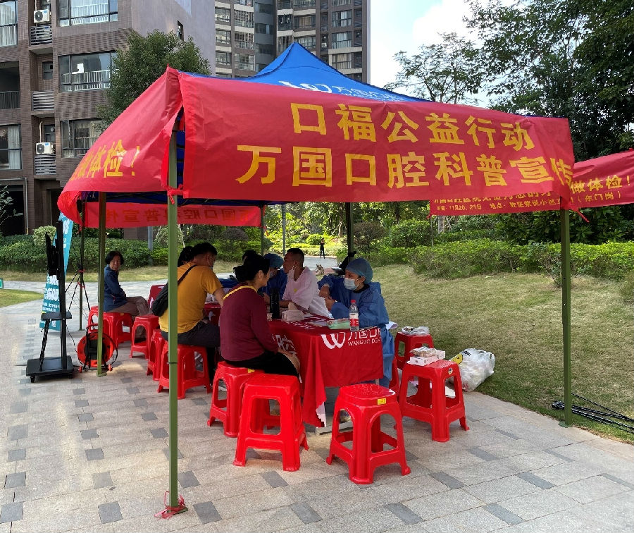 此外,万国口腔还会经常走进社区,为居民提供口腔健康检查等口腔公益服务,让市民在家门口就能及时解决口腔方面的疑惑。