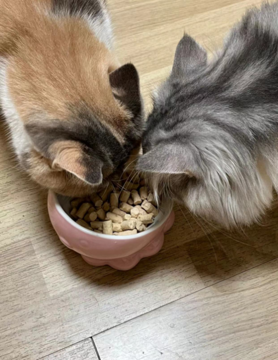 虽然看着好玩儿,但是不好好吃饭这件事,当妈的我可不能允许。没食欲也没事儿,我来帮孩子提高食欲。猫猫最是喜欢鲜味,在猫粮中要说到鲜,就不得不提最近弗列加特的鸽子肉冻干了。我们家猫咪大队一直吃的是他们家FPMR鸡肉的那款主食冻干,这天热没食欲,那我就寻思给他们换个口味,尝尝鲜哈,没想到他们还真是挺爱吃的。